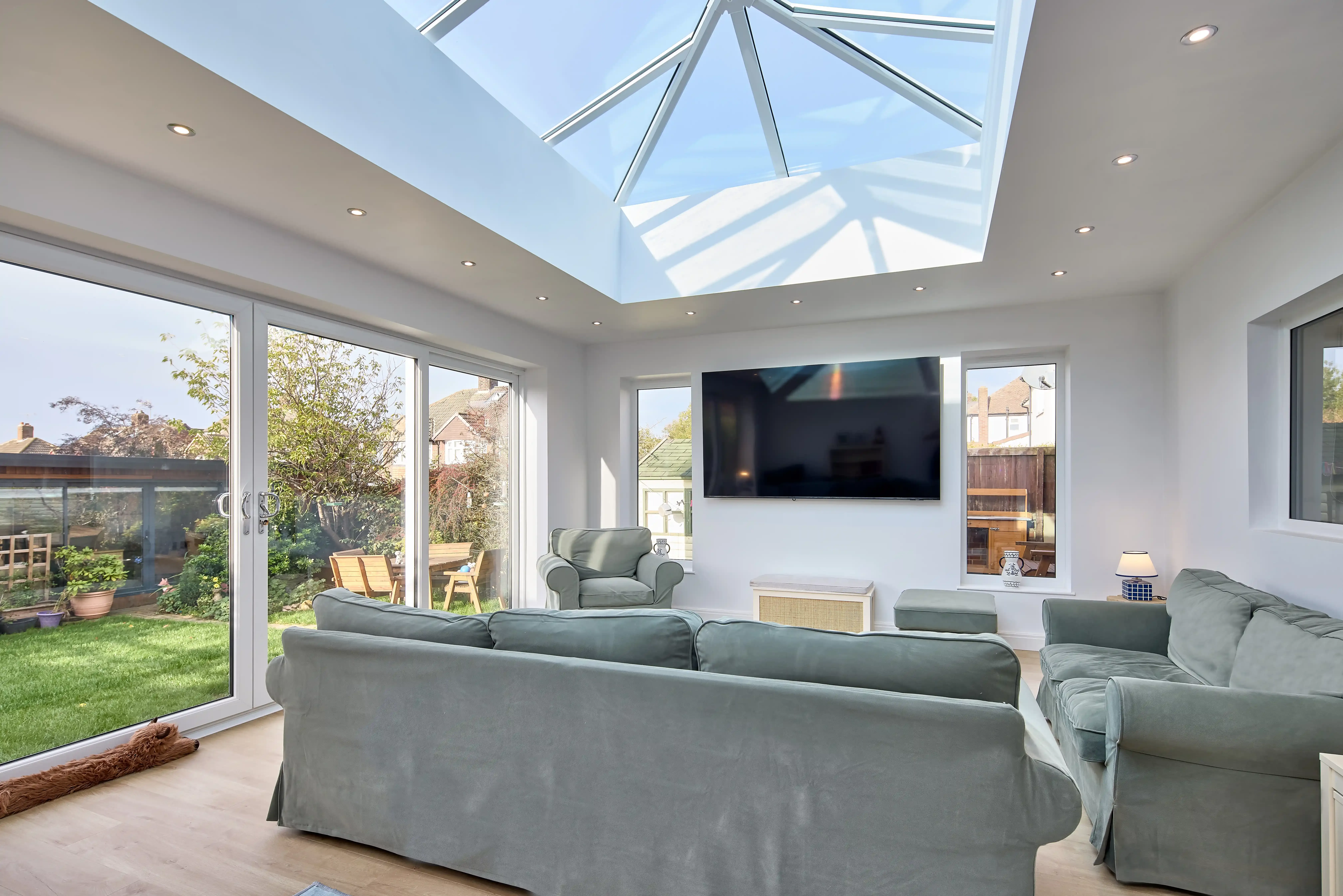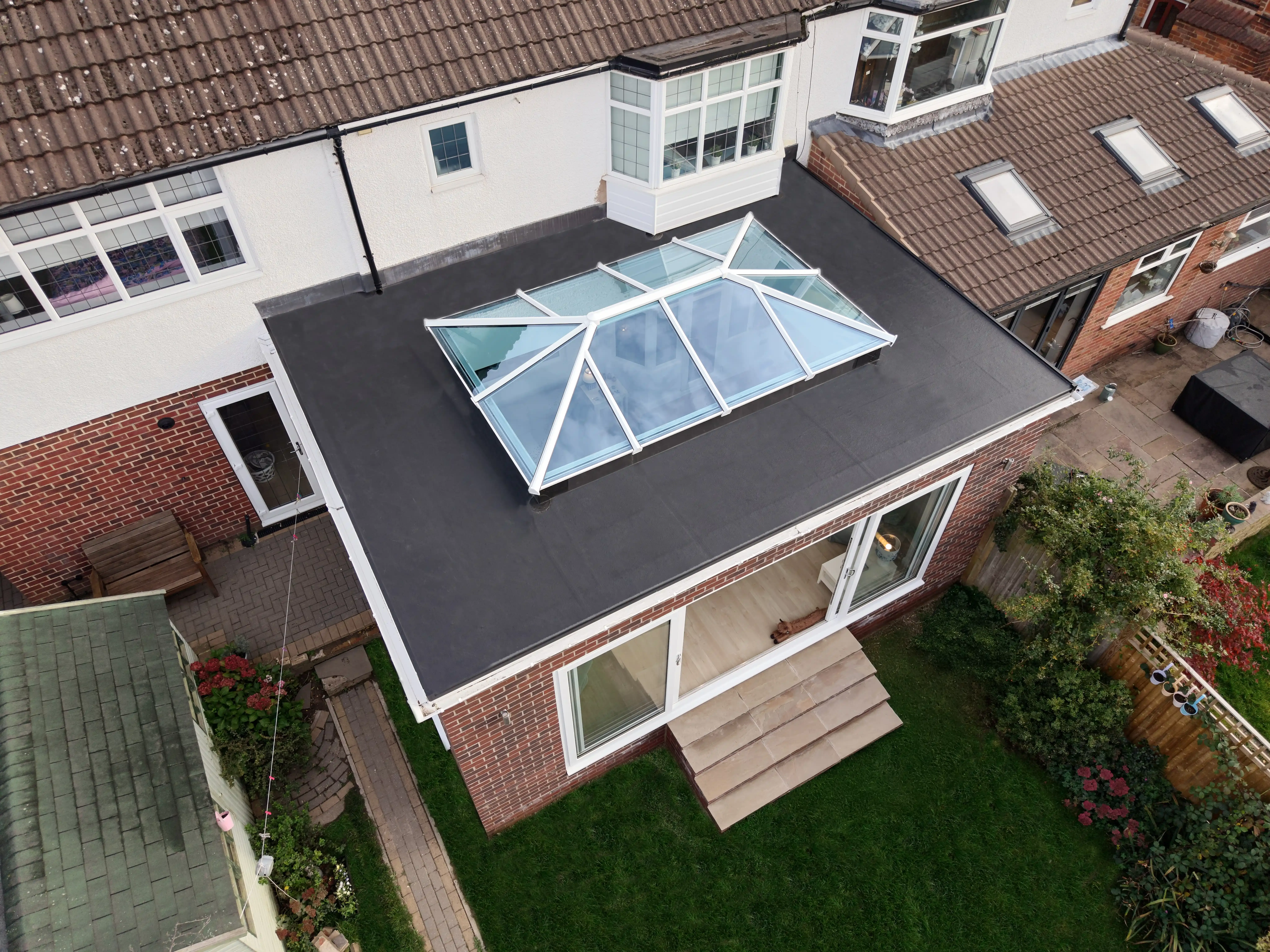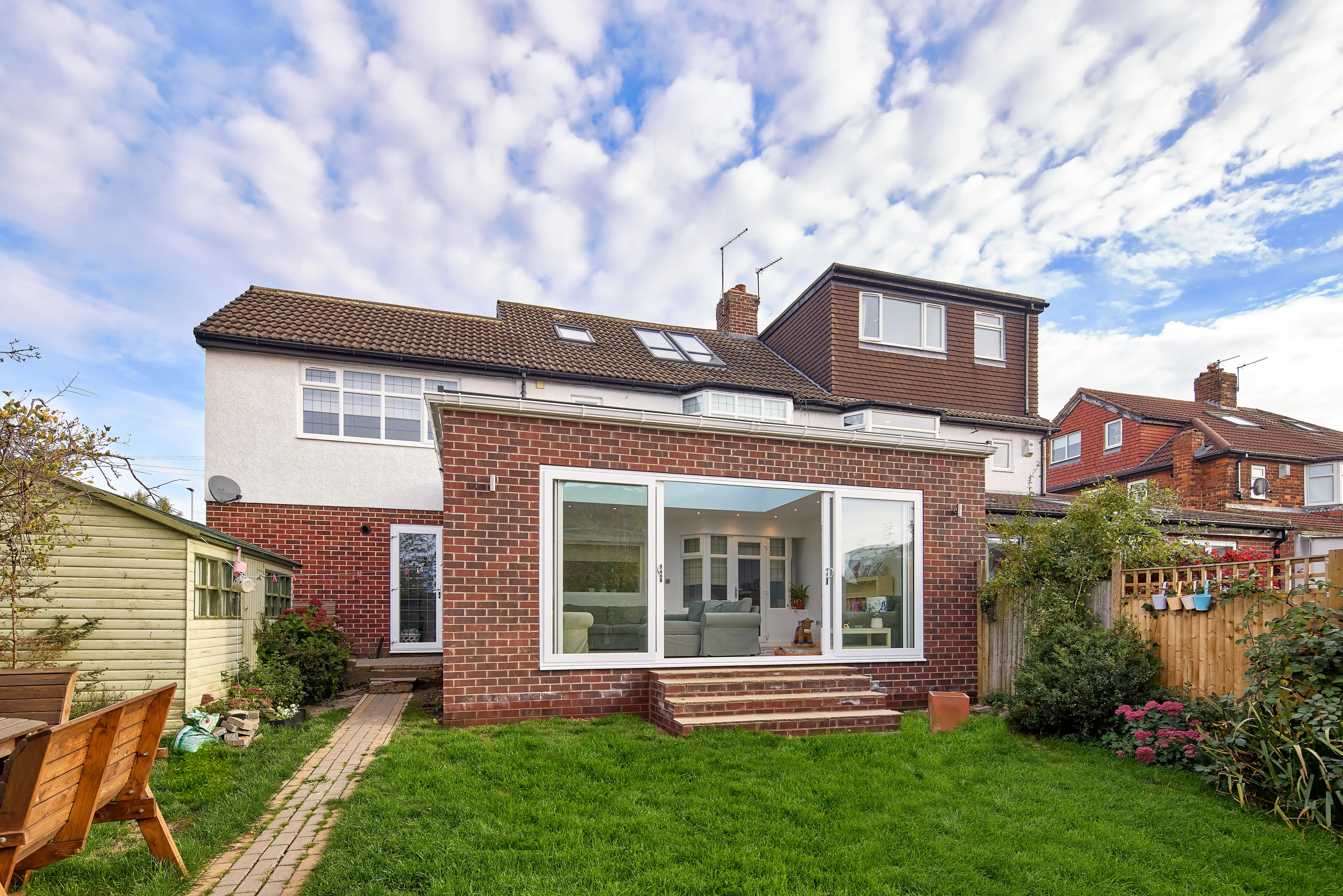 - Bespoke design that overcame structural and layout challenges, including sloping garden levels and existing features like the bay window