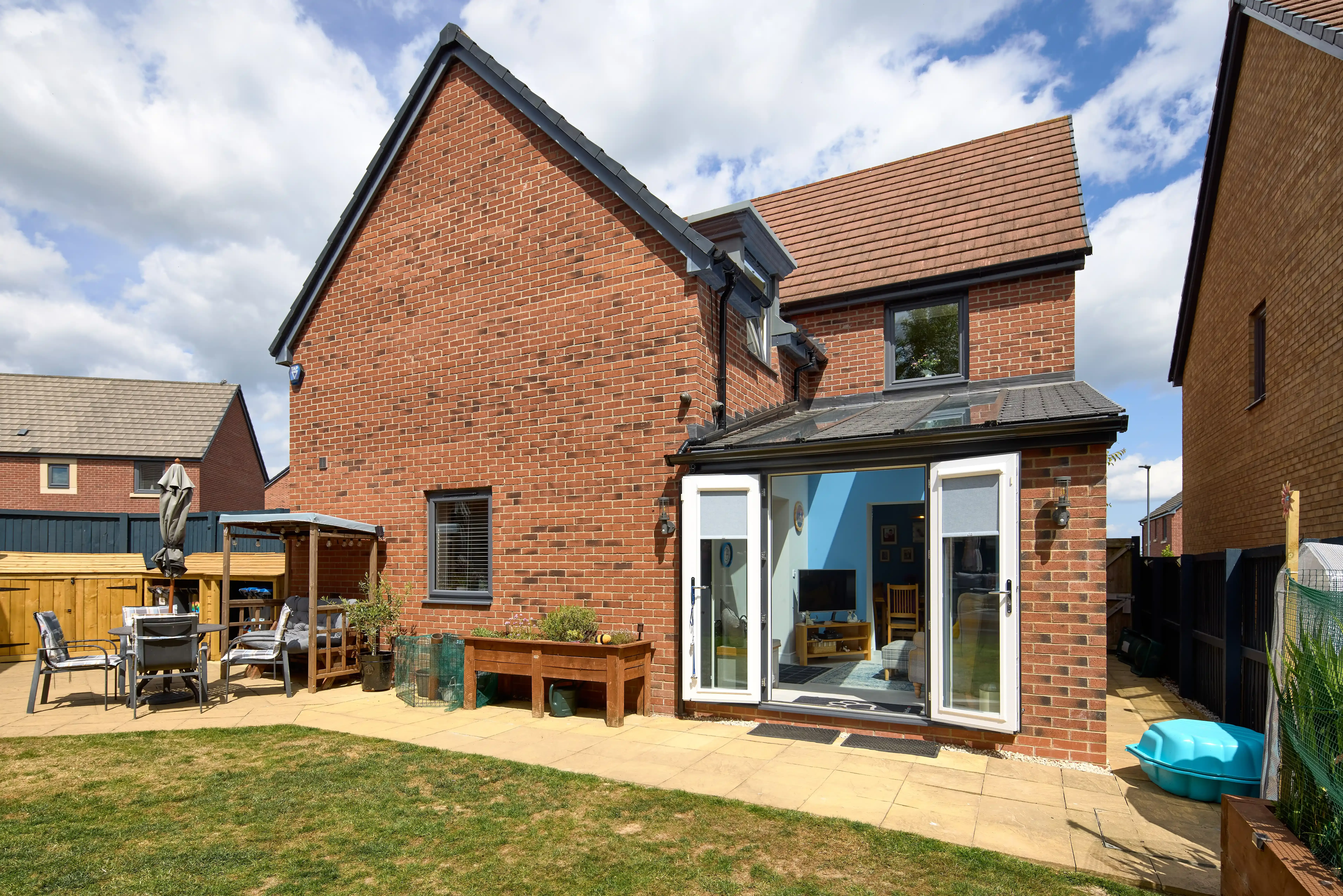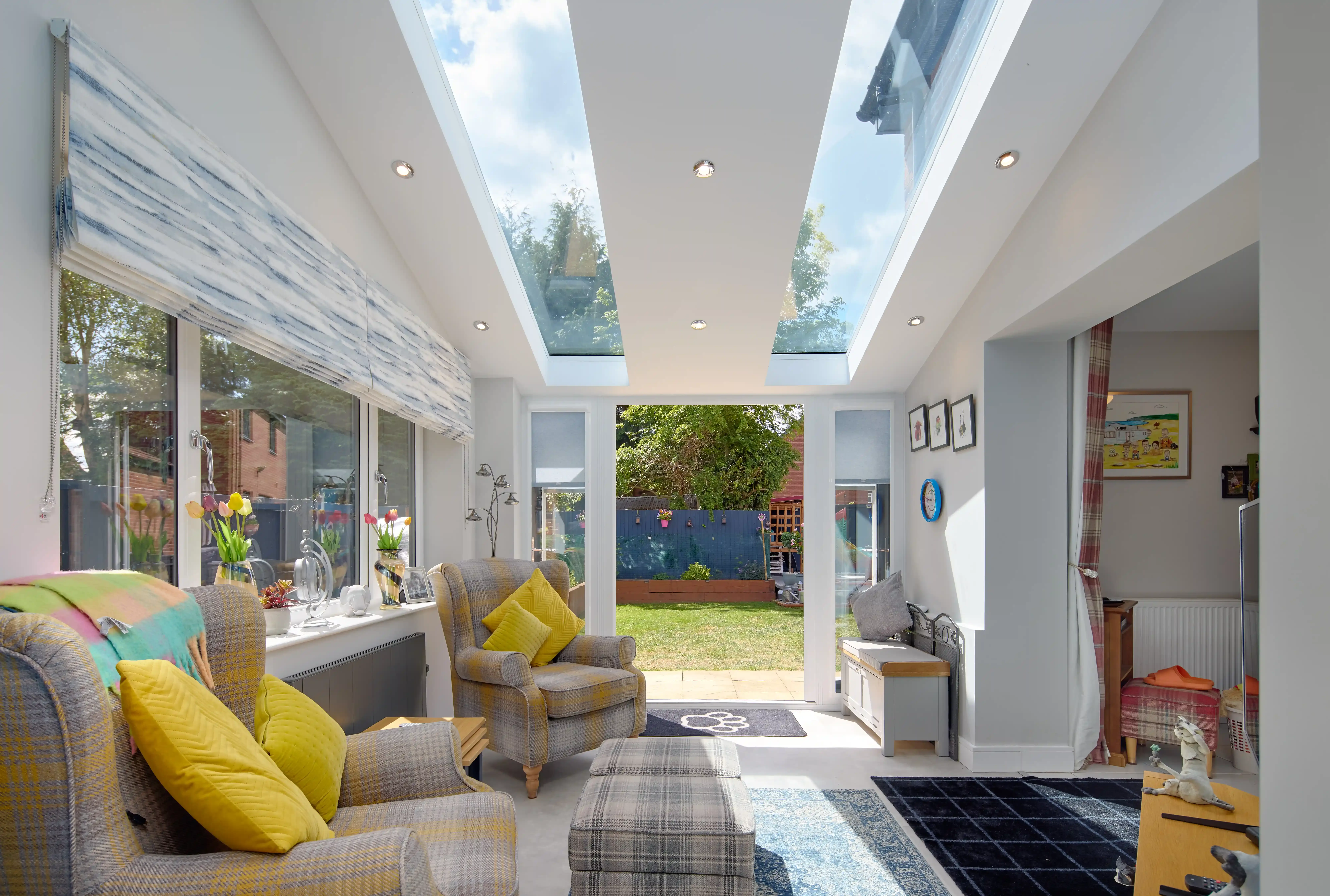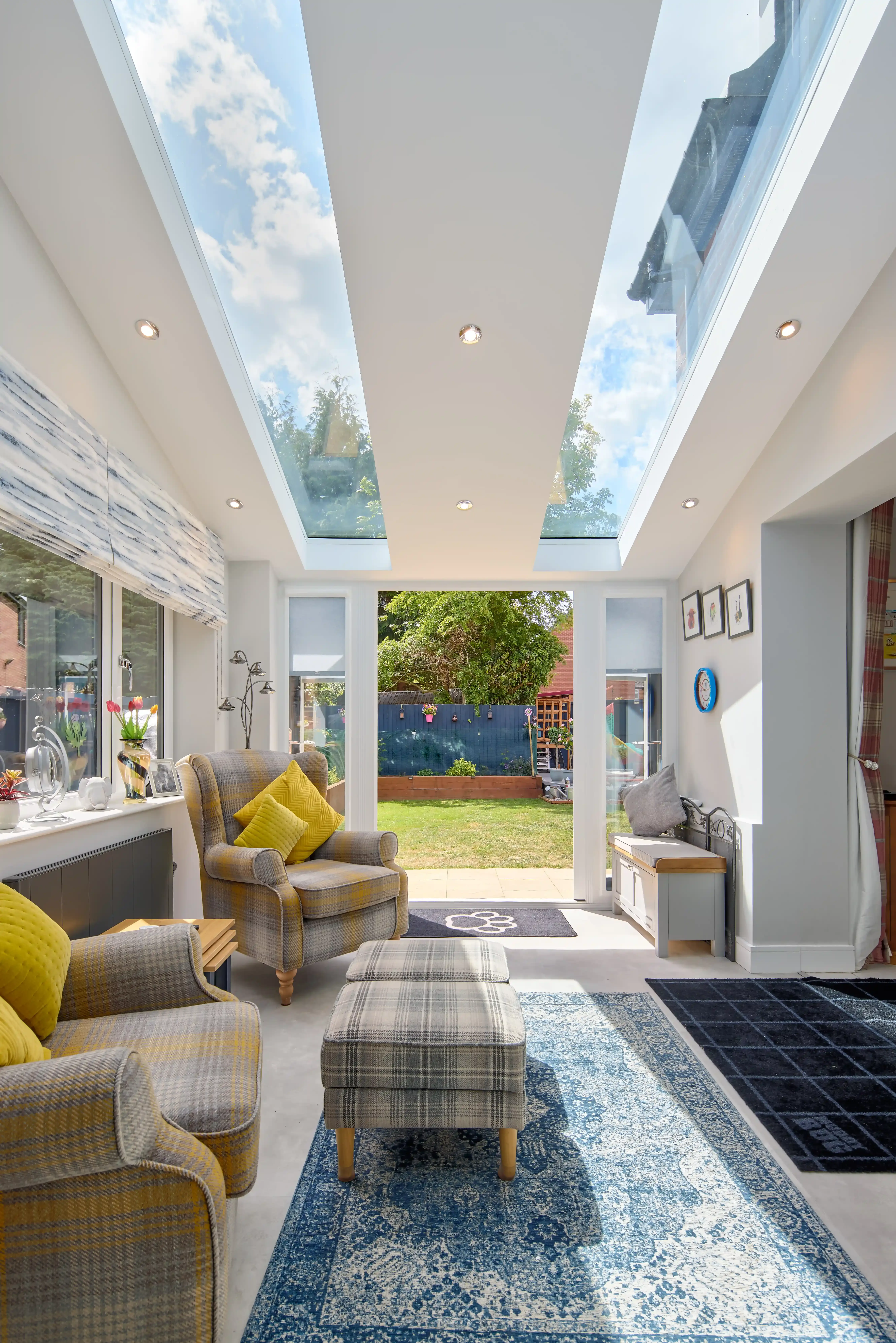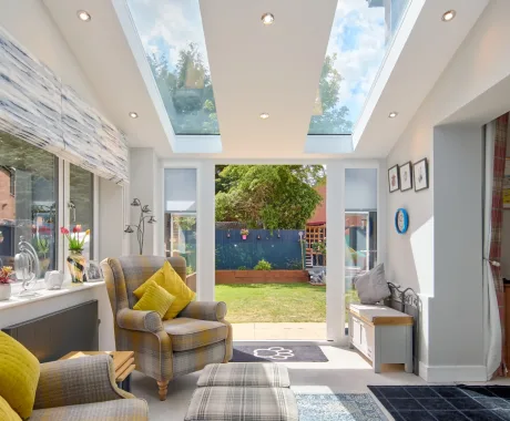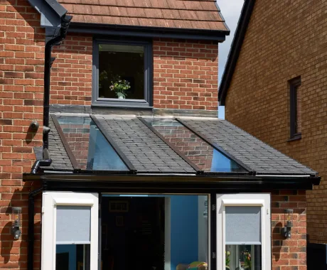 Working closely with our Design Consultant, the decided upon a 3 x 3.5m extension to create an additional living space, with ash slate-style tiles to match their existing property. They also opted for two SOLsirius panels and nine internal LEDs to really open up their space.