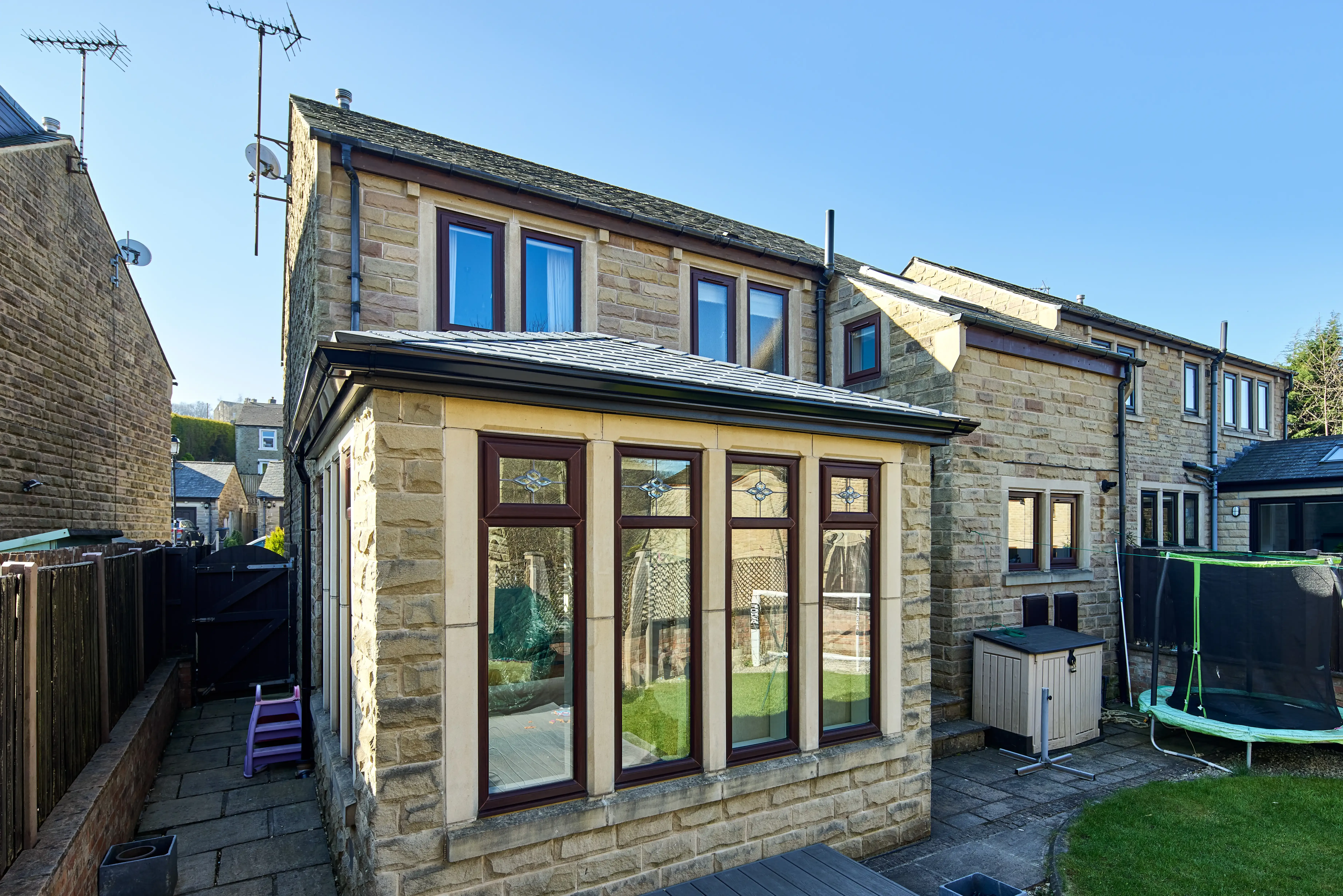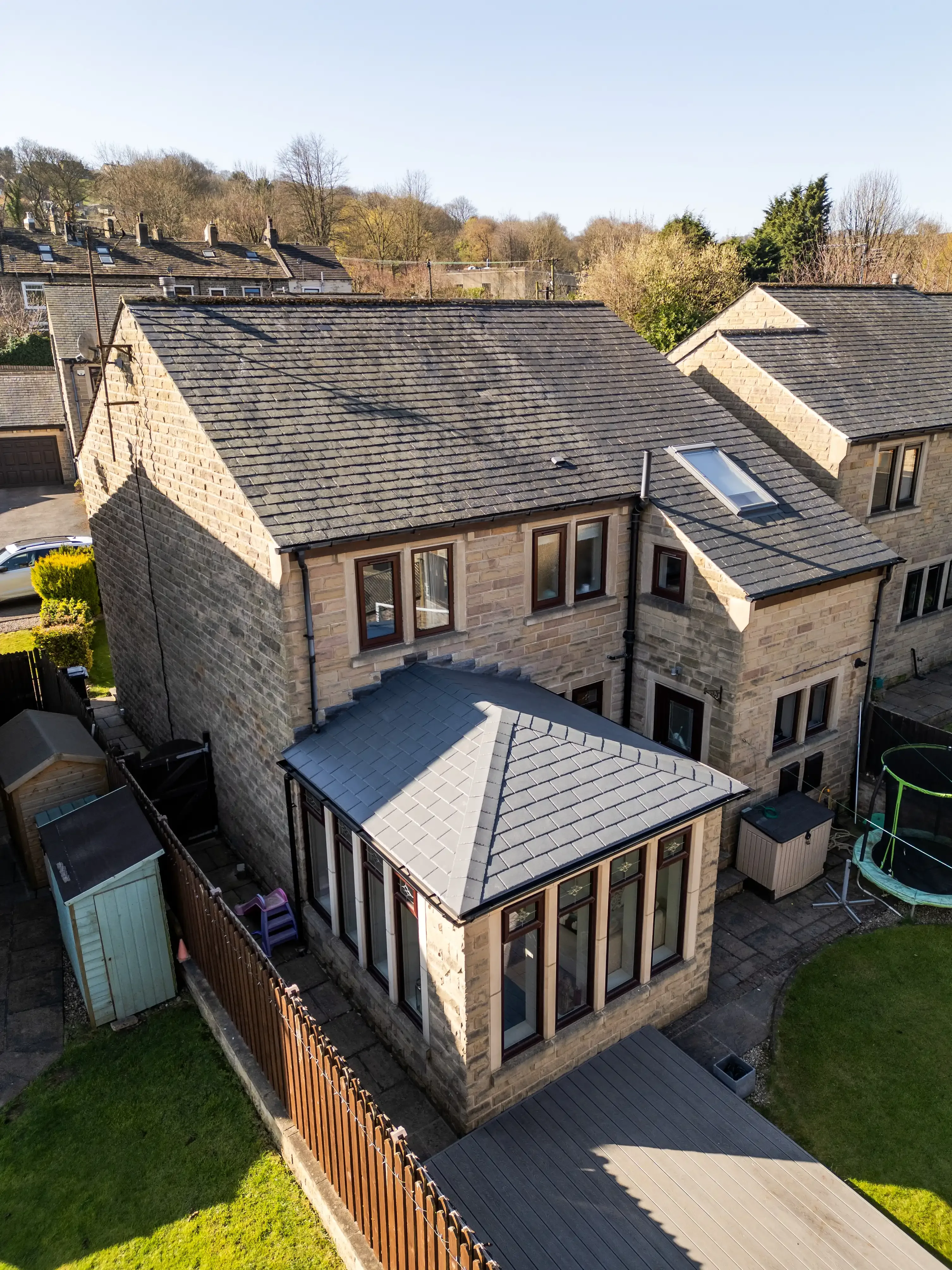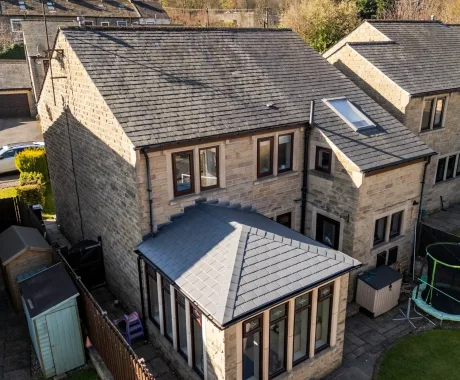 Working alongside our Design Consultant she opted for a solid roof with a slate style tile to match her property. Our solid roof system transforms glass and polycarbonate conservatories into a utilisable space that can be used all year round no matter the weather!